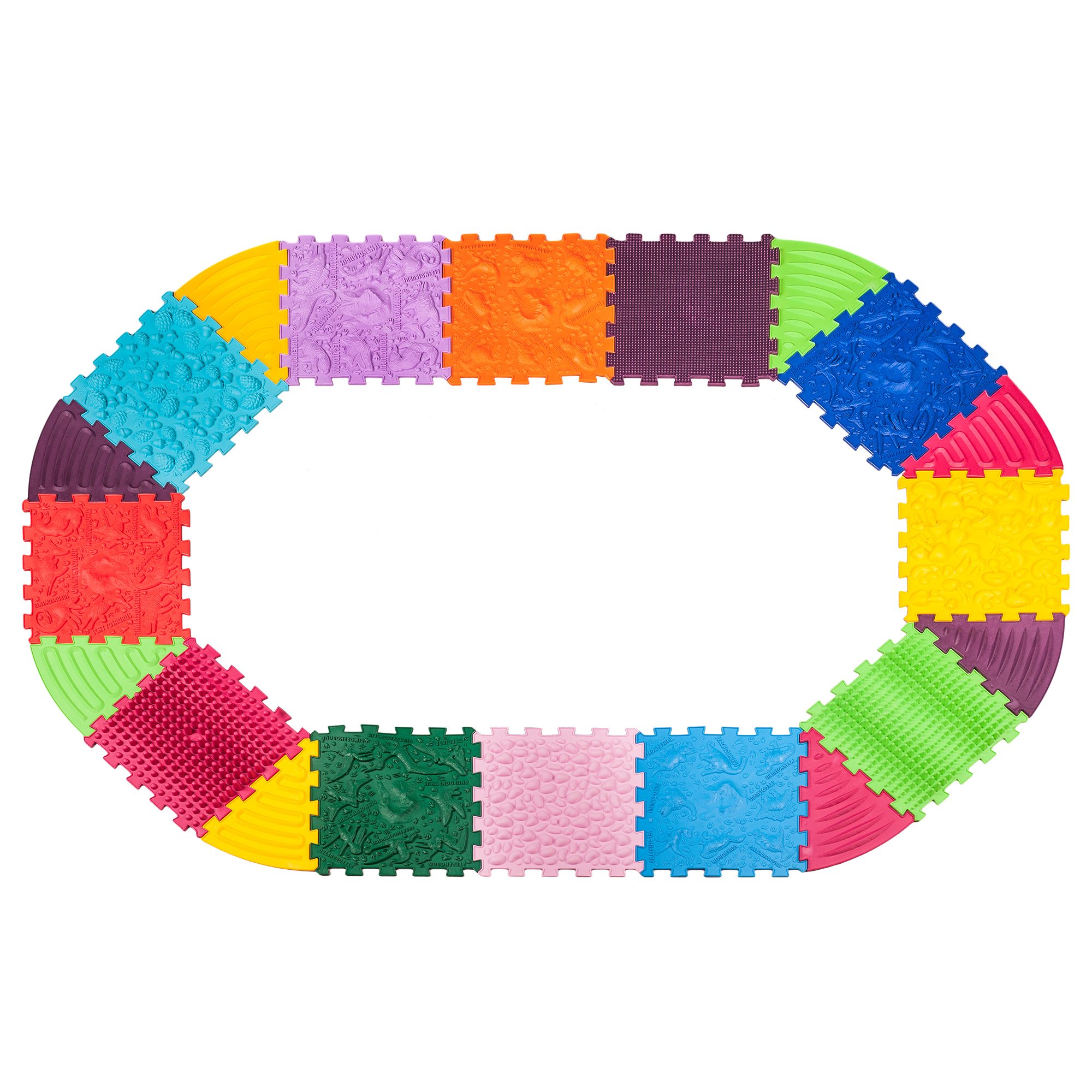 Minden puzzle ugyanabból az ártalmatlan és hipoallergén PVC anyagból készül, amely nem tartalmaz ftalátokat és egyéb káros anyagokat. Azonban a különböző felületeknek köszönhetően más-más érzést váltanak ki. A Fű, a Kagyló, a Kavics, a Gomba a puhább elemek közé tartozik. A Tornyok, a Sünök, a Tengergerfenék, a Makkok a közepesek közé tartoznak. A Piramisok, a Tüskék, a Lótusz, a Tobozok a keményebb elemekhez tartoznak. A különböző keménységű felületek a legjobb hatással vannak a masszázsra, a lábedzésre és az érzékszervi integrációra.