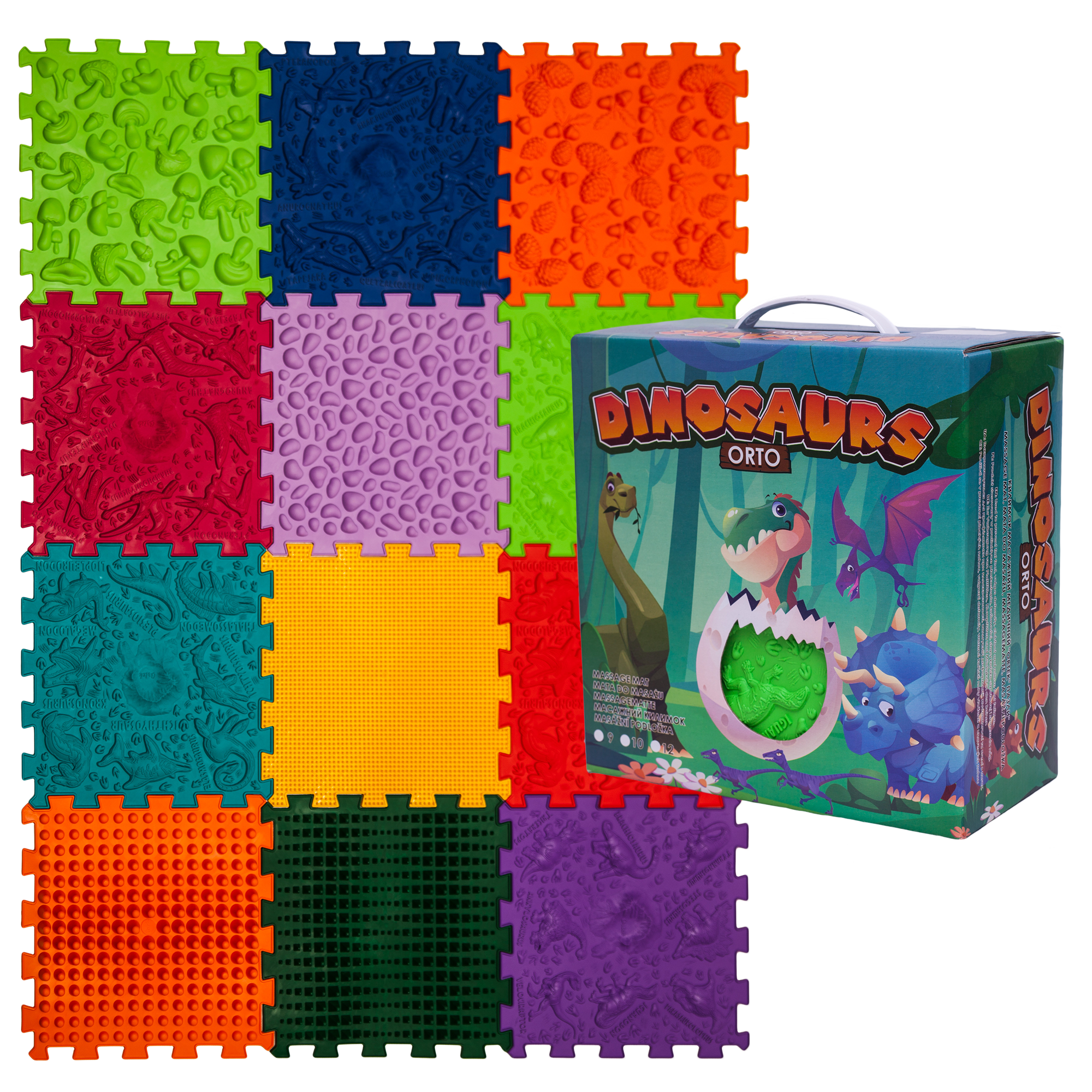 Dinoszauruszok Puzzle 12 elemből álló masszázs szőnyeg