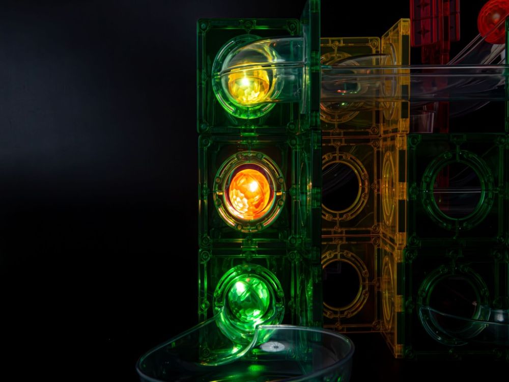 Mágneses golyópálya világító labdákkal, amely látványos és kreatív építési élményt nyújt. Fejleszti a finommotorikát, a térbeli gondolkodást és a koncentrációt, miközben izgalmas, fénylő pályákon gurulnak a golyók. 3 éves kortól ajánlott.