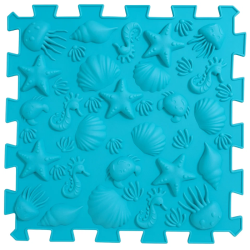 A masszázs szőnyeg 6 négyzet és 6 íves elemből áll. A négyzet alakú elem mérete: 26*26 cm, az íves pedig: 23*19 cm.