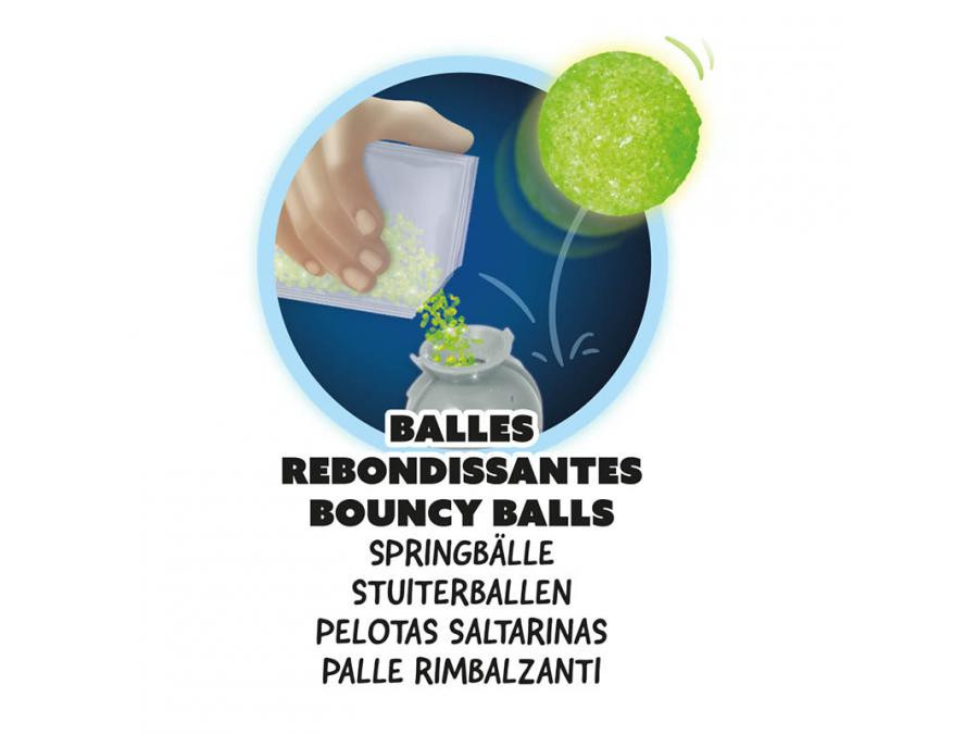 A mellékelt UV-lámpa segítségével a fluoreszkáló színek életre kelnek, így a gyerekek látványos reakciókat és jelenségeket figyelhetnek meg. A kísérletek során többek között készíthetnek: