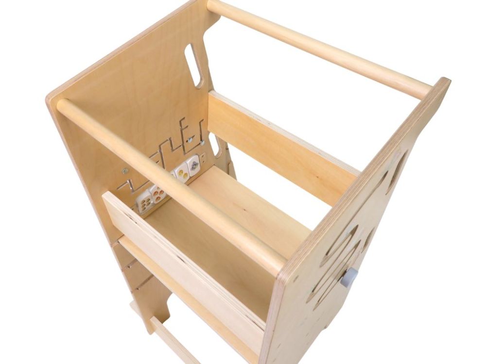 A PRO 5in1 növekvő tanulótorony biztonságos és sokoldalú segítőtárs a mindennapokban. Masszív, prémium minőségű nyír rétegelt lemezből készült, állítható platformmal, amely együtt nő gyermekével. Könnyen átalakítható tanulótoronnyá, asztallá vagy etetőszékké, így éveken át praktikus megoldást nyújt a fejlődés minden szakaszában.