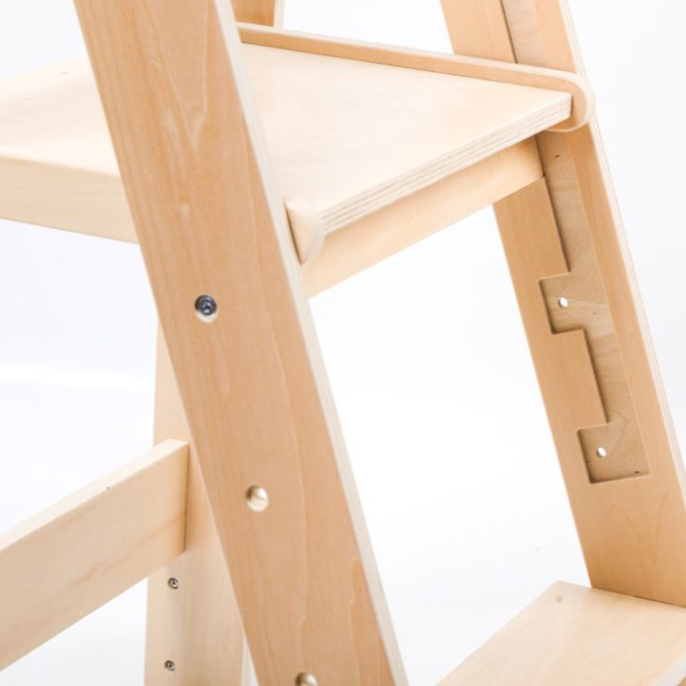 A magasságállítható platform (3 szinten állítható!) lehetővé teszi, hogy a torony együtt nőjön gyermekeddel – már 1 éves kortól használható, és sokáig hű társ marad. A lekerekített élek, sima felületek és vízbázisú festékek garantálják a biztonságos használatot.