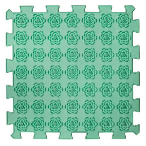 A szőnyeg 10 puzzle elemből áll, és higiénikus, hipoallergén PVC-alapú anyagból készült.